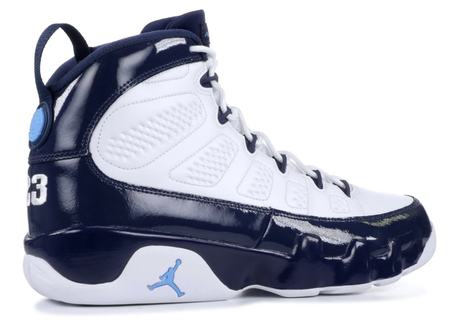 releasing the new Jordan 9 Retro Pearl Blue. This AJ 9 comes with a white upper with blue accents, white midsole with blue accents, and a white sole.